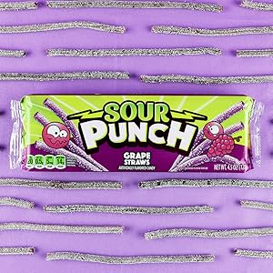 Sour Punch Ecommerce Straws in grape flavor offer a delightful chewy experience with a perfect blend of sweet and sour. This case includes six resealable 4.5oz trays, making it an ideal choice for parties, events, and celebrations. Enjoy the trusted quality of Sour Punch, a brand synonymous with fun and flavor.