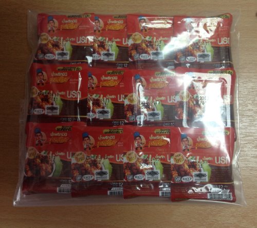 12 Package Thai food "Namprik Mini Narok" Rung Cha Roen Chili Eating rice 12g. Ingredient: Dried Fish 45% , Chillies 25%, Tamarind 15%, Garlic 5% , Sugar 5%, Fish souce 5%