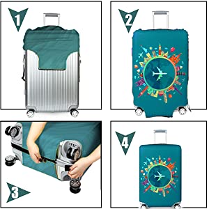 OrgaWise Elastic Travel Luggage Cover Suitcase Cover for 18-32 Inch Suitcase Protective Cover with Zipper, with a Luggage tag