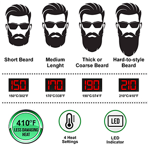Works fine but doesn't get my husbands beard much straighter than using a blow dryer and brush. His beard is very coarse and extremely curly, like to the point it coils up smooshed to his face in ringlets