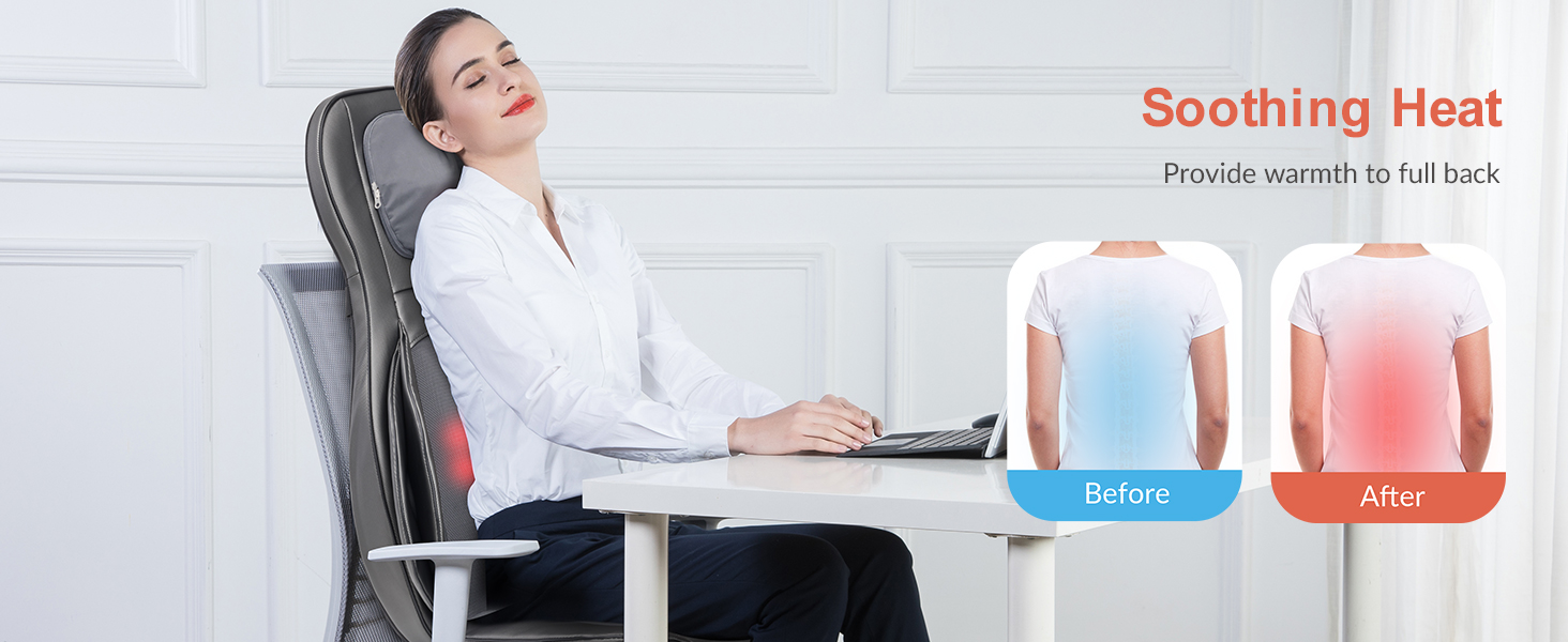 The COMFIER Shiatsu Back Massager with Heat combines 4 adjustable Shiatsu nodes, rolling and kneading massage techniques, and customizable heat and compression settings to deliver a deep tissue massage experience. Designed for use on any chair, it offers targeted relief for neck, shoulders, and full back, making it perfect for home or office use.