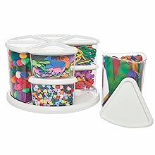 The Deflecto Rotating Carousel Craft Organizer features nine removable clear canisters (six 3-inch and three 6-inch) with snap-tight lids, all housed in a compact 360° rotating base. Designed to keep small craft supplies visible, secure, and easily accessible, it’s the perfect solution for decluttering and streamlining your creative workspace.