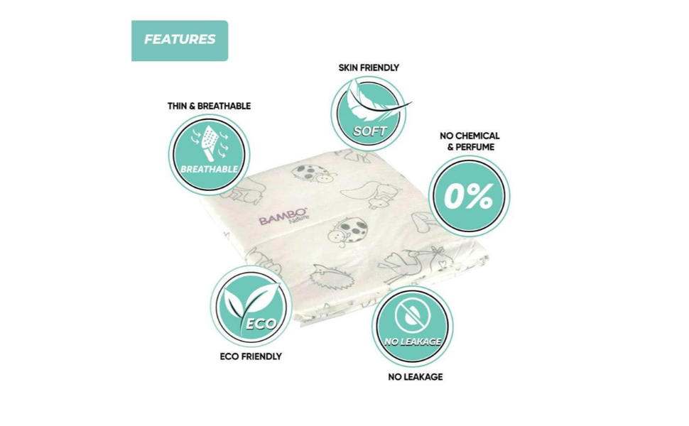 Additional product features | Breathable Back Sheet, Fragrance, Dye and Paraben Free, Guaranteed Skin Safe, Made with 100% TCF Fluff Pulp, Ultra Soft with an Absorbent Layer |