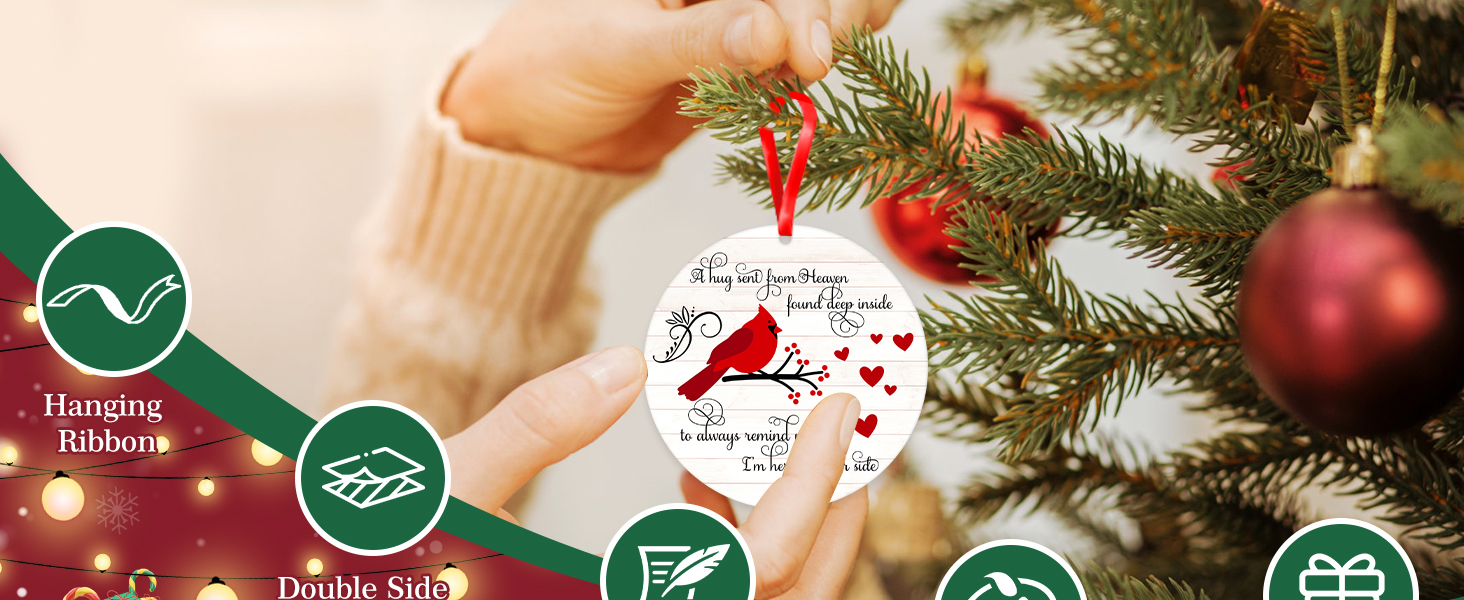 WaaHome Red Cardinal Christmas Ornaments 3'' Christmas in Heaven Ornaments in Memory of Loved One Christmas Tree Ornaments Tree Decorations