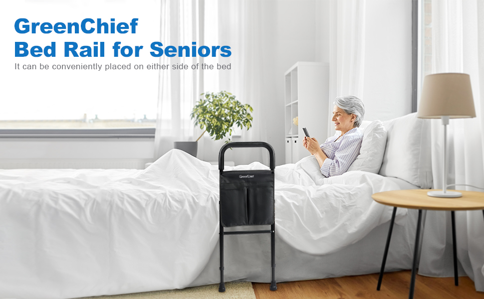 The GreenChief Bed Rails for Elderly are a durable, adjustable safety solution designed to assist seniors and those recovering from surgery. With a weight capacity of 300 pounds, these rails fit various bed sizes and come with a convenient storage pocket. Easy to assemble and install, they ensure a comfortable grip for enhanced safety.