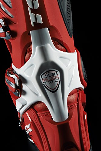 D.F.C. - Double Flex Control System The new Double Flex Control System features a PU joint in the ankle area studied to improve front and rear flexibility of the leg. The system is attached to the boot with two lateral hidden screws at malleolus level. This special construction allows a front flexibility of up to 18 degrees and, thanks to two lugs that slide inside dedicated pockets, it allows a rear flexibility of up to 15 degrees, thus avoiding back overextension of the ankle joint and protecting the riders' foot from injuries. Fastening band The Double Flex Control structure integrates a fastening band that works in synergy with the system, following the mechanical flex of the ankle joint and allowing a precise ankle hold with consequent increase in riding performance levels. Boot Leg Structure The bootleg features an external polyurethane exterior and a soft internal upper designed to envelop the leg completely and offer excellent comfort levels. Internal upper construction: Soft micro fibre upper allows enhanced calf envelopment; Double Velcro® fastening; Elastic upper collar to avoid gravel, dust and mud entry; Rubber Heat-Guard The PU boot leg is equipped with a glued rubber heat - guard that offer a superior grip on the bike frame. Calf Adjustment System The shin plate is made of polyurethane and presents an adjustable system to fit different calf dimensions perfectly and to accommodate knee guards/braces. The shin plate adjustment is based on screws that shift inside hidden holes, each offering two different positions to choose from according to the range of movement you wish to achieve. Quick Release/Locking Aluminium Buckles Buckles featuring an ergonomic design for easier opening, even with gloves on; special structure that allows micro adjustment and optimum aligning of each individual buckle, totally interchangeable.