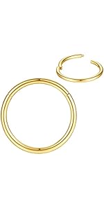 I got the set of 2 rose gold in size 20g 8mm to use for my nose piercings— I have a nose piercing on both nostrils as well as my septum and I like to change it up from all three to just two etc etc. When I just wear two nose rings in my nostril piercings I like for them to match, and these are perfect for that as well as a great option for my septum ring, too, since I gauged my septum ring size down to a 20 gauge. So getting two rings for a great price is totally worth it for me especially since I can use them for any of my nose piercings. The rose gold color is a little more of a bronze than I was expecting but I honestly really like it since it has less of a “pink” to it:) I love the ease of putting the ring in and closing the hoop is hassle free, it easily clicks into place! The 8mm is a perfect fit for my nose rings and fits nice and comfortably and exactly the right amount of “snug” I was going for. I was debating for a good while whether I wanted to get the 20g ring in a 7mm or so since I wanted to get something that would fit closer to the nostril especially for when I wear multiple nose rings and while I knew that typically the 8mm was the most common nose ring size for the nostrils I think I just hadn’t considered the fact that the rings I’d previously used were maybe just not as good of quality and tended to stick out a bit more. So when I got these in the mail I was SO excited and put them in right away (one on either side of my nose) and I am SO happy with the fit! They literally fit perfectly and are exactly what I was looking for!! Thank you!