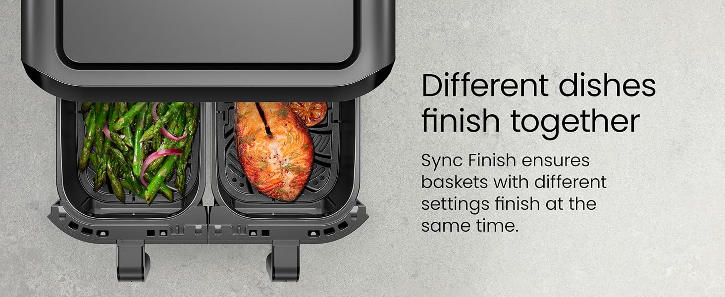 The Chefman Dual Air Fryer features two separate 9-quart baskets powered by 1700 watts, allowing simultaneous cooking of different foods with a Sync Finish timer to perfectly coordinate meal completion. Its nonstick, dishwasher-safe design ensures easy cleanup, while safety features like auto-shutoff and stay-cool handles provide peace of mind. Ideal for health-conscious families seeking convenience and versatility in one sleek kitchen appliance.