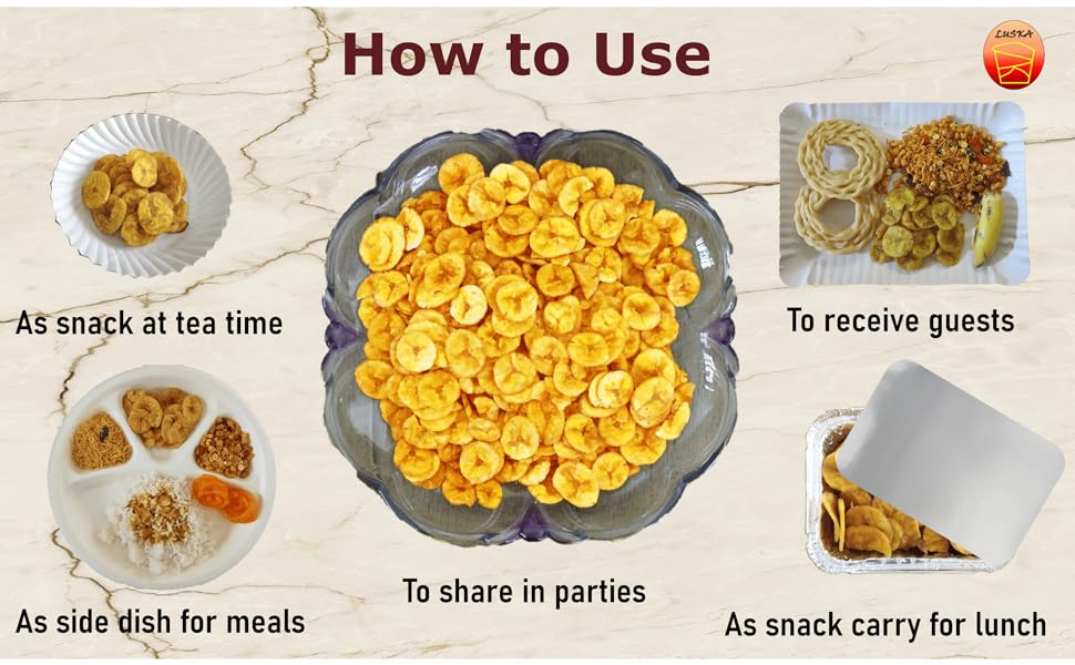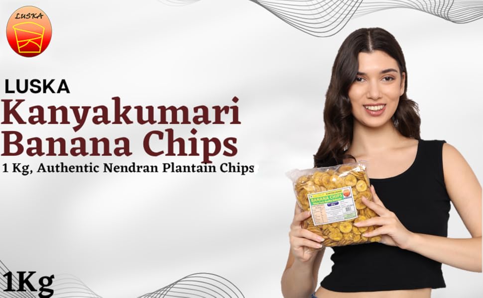 LUSKA Kanyakumari Banana Chips are a premium 1kg pack of authentic Nendran plantain chips, handcrafted by expert chefs in the Kanyakumari region. Made from fresh, sustainably sourced bananas, these chips offer a unique puffy crunch with zero cholesterol, zero trans fat, and no artificial additives. Cooked in pure refined palm oil and packed fresh, they deliver a healthy, flavorful snack perfect for sharing at any occasion.