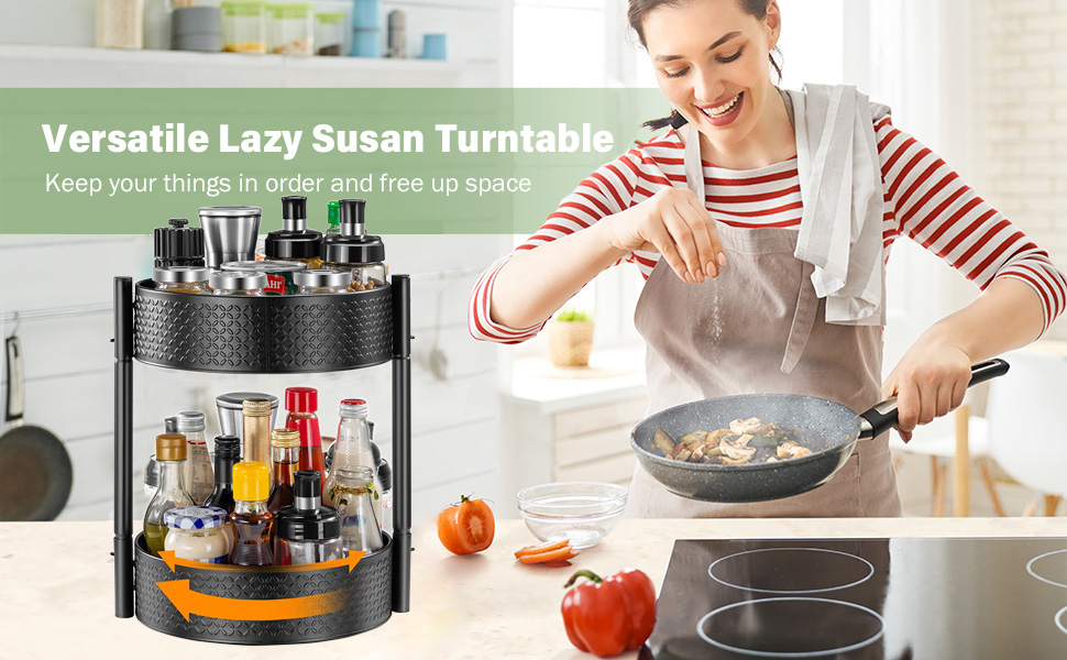 The U-HOOME Lazy Susan Turntable Organizer is a versatile 360-degree rotating storage solution designed for cabinets, pantries, and countertops. With a sturdy carbon steel construction and an anti-falling design, it ensures your items stay secure while providing easy access. Ideal for various uses, it comes with a lifetime warranty for added confidence in your purchase.