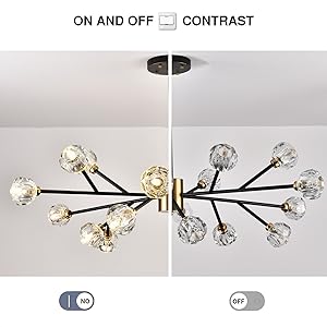 The media could not be loaded. It’s pretty, but not as pretty as another brand I have in my closet. (Same style) the crystals are too small so the light bulbs stick out at the ends which is super disappointing. I picked this one specifically because it was the only one I could find in black and gold.
