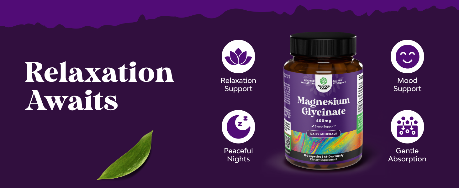 Magnesium Glycinate 400mg Mineral Supplement - Calming Magnesium Supplement for Women and Mens Natural Sleep Support Bone Health Immunity Mood Support Heart Health and Muscle Recovery - 180 Count