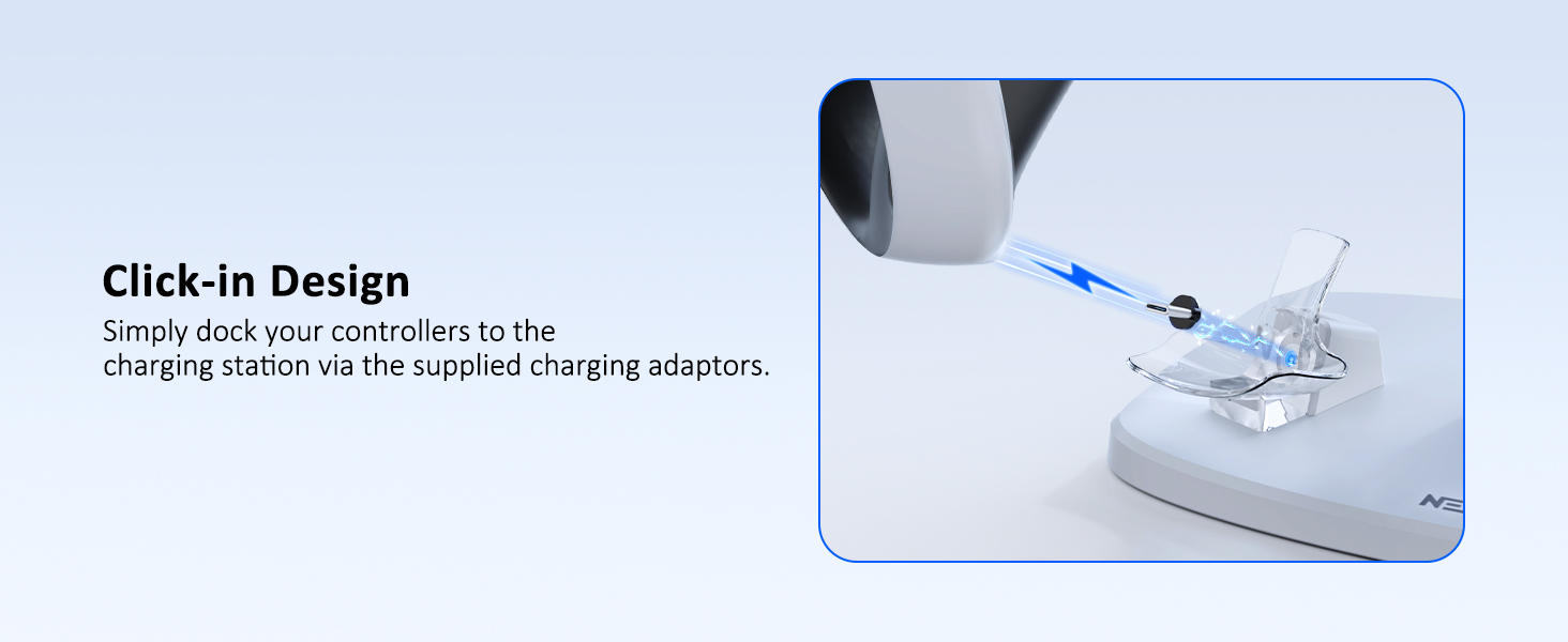 The NexiGo Controller Charging Station for the PSVR2 is an essential accessory for anyone who owns a PlayStation VR2 system. This charging dock is sleek and functional, providing a convenient place to store and charge your controllers. The dual fast charger feature means that your controllers will be fully charged in no time, and the LED light indicator lets you know when they’re ready to go. The magnetic connector ensures a secure connection, and the headset display stand is a nice bonus for displaying your PSVR2 headset when it's not in use. It’s a great way to keep everything organized and ready for your next VR adventure!