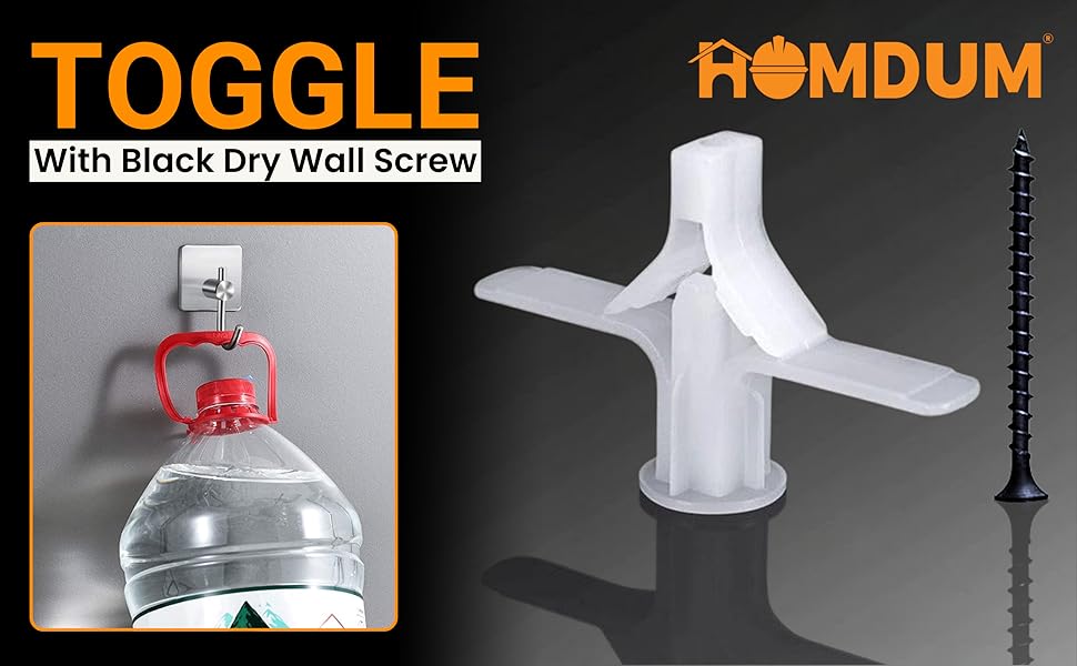 The Homdum Toggle Drywall Anchor kit features 100 nylon wing-style anchors and 100 drywall screws, sized 10 x 35 mm, designed for secure mounting in hollow walls like drywall, POP, and gypsum boards. Its innovative toggle wing mechanism provides superior holding strength, while the complete 200-piece set ensures you have all the hardware needed for professional-grade installations.