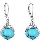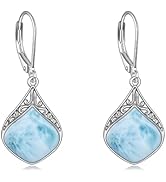 These sterling silver teardrop earrings feature natural Larimar gemstones with unique ocean-blue patterns, measuring 34.3 by 13.5mm and weighing 4.2g per pair. The hypoallergenic, platinum-plated filigree design offers lightweight comfort and durability, making them ideal for sensitive ears. Packaged in an elegant gift box, they are perfect for gifting on special occasions or elevating your everyday summer look.