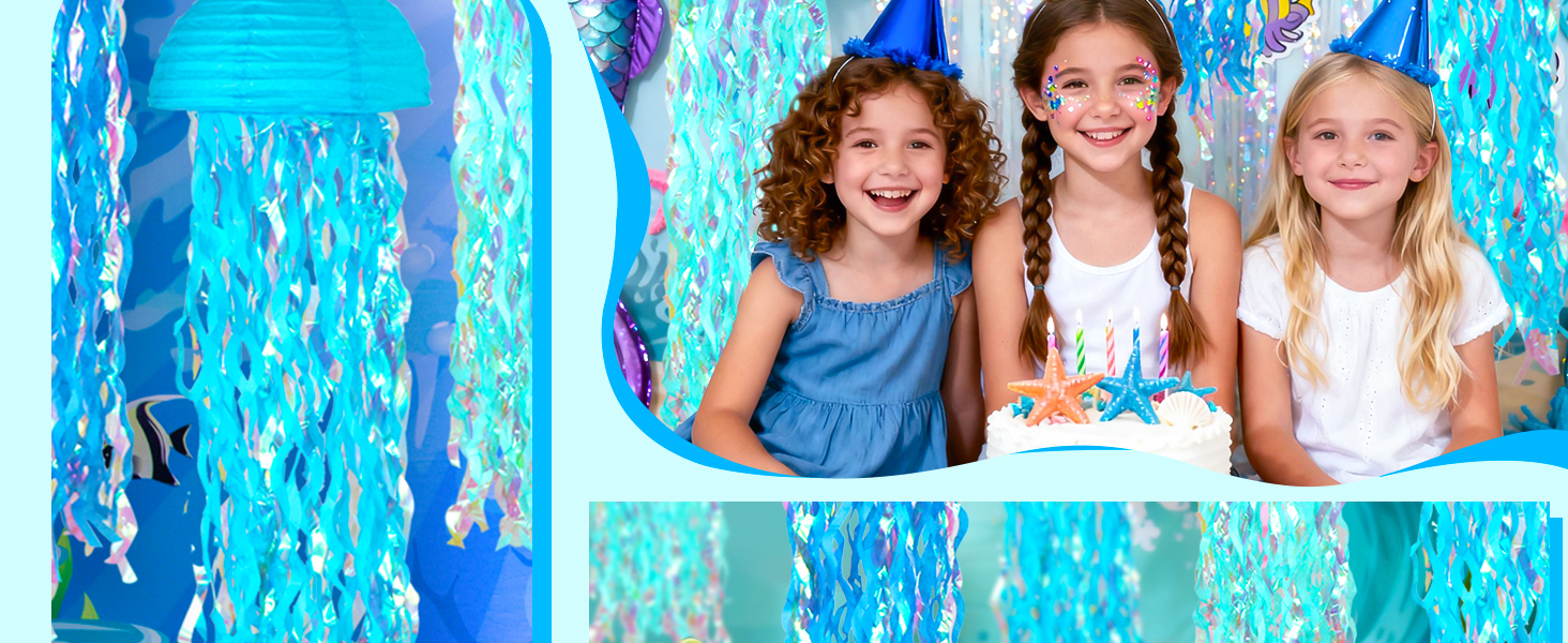 - 🧜♀️【Stitable Scene】This jellyfish paper lantern is a great ocean party decoration and Little Mermaid birthday decorations, which can perfectly create an under the sea party atmosphere. Everyone at an under the sea party will have the magical feeling of swimming on the ocean floor and frolicking with lovely jellyfish. Hanging jellyfish paper lanterns are also perfect for ocean themed baby shower, summer pool party decor, last splash bachelorette decorations, classroom’s ocean theme, baby baths, DIY activities for children, and birthday parties for boys and girls