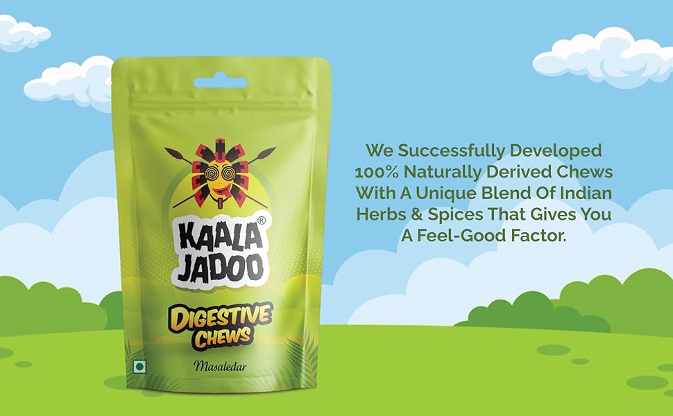 Kaala Jadoo Digestive Chews are a pack of 6 zip-lock pouches, each containing around 40 soft, chewy candies made from a unique blend of Indian herbs, spices, and fruit pulp. These 100% vegetarian treats combine natural ingredients with nostalgic masala flavors, designed for on-the-go enjoyment and loved by all age groups.