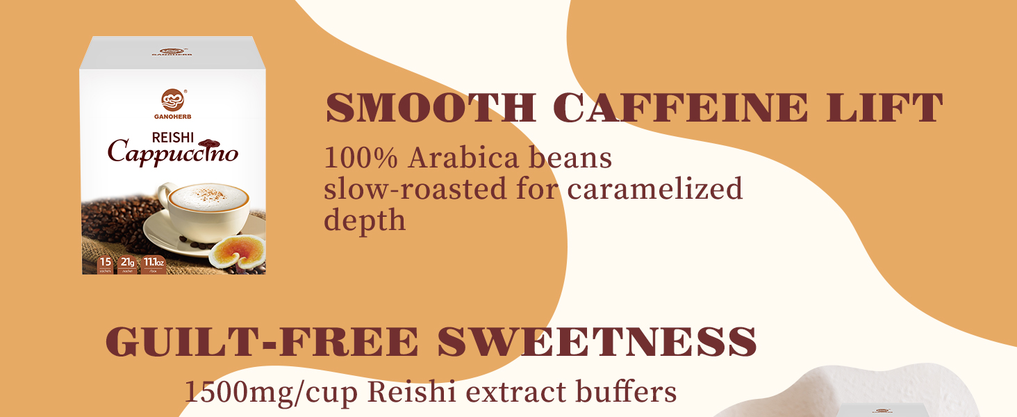 The Mushroom Coffee Alternative Cappuccino Mix is a convenient instant drink that combines the rich flavors of coffee and milk with the health benefits of reishi mushroom extract. Each serving contains 420mg of organic reishi, promoting stress relief and immune support, making it an ideal choice for health-conscious coffee lovers.