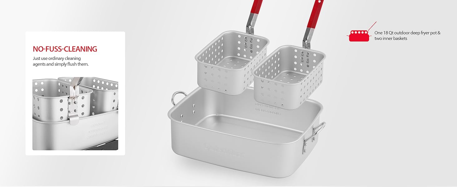 The 58,000 BTU Outdoor Fryer is a robust 18-quart deep fryer designed for outdoor cooking enthusiasts. It features a durable cast iron stove head, two inner baskets for easy food handling, and a CSA-certified regulator for safety. With a quick setup time and eco-friendly propane power, this fryer is perfect for making everything from crispy fish and chips to delicious donuts.