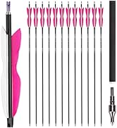 The S F 28-inch Carbon Arrow Practice Hunting Arrows (Pack of 12) feature high-grade carbon fiber shafts with a spine rating of 500, designed for draw weights between 30-60 pounds. Each arrow is precision matched for weight and spine, ensuring consistent flight and accuracy. Equipped with 3 durable TPU vanes and adjustable nocks, these arrows offer reliable performance for compound, recurve, and longbow users, making them ideal for both target practice and hunting.