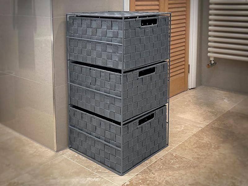 The EHC 3 Drawer Large Storage Unit Cabinet combines a durable alloy steel wire frame with lightweight polypropylene webbing, offering a sturdy yet portable storage solution. Measuring 31 x 30.5 x 61.5 cm and weighing just 3.63 kg, it features three spacious drawers perfect for organizing bathroom, bedroom, or nursery essentials. Its built-in pull-out handles enhance mobility, while the grey finish complements any modern interior.
