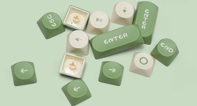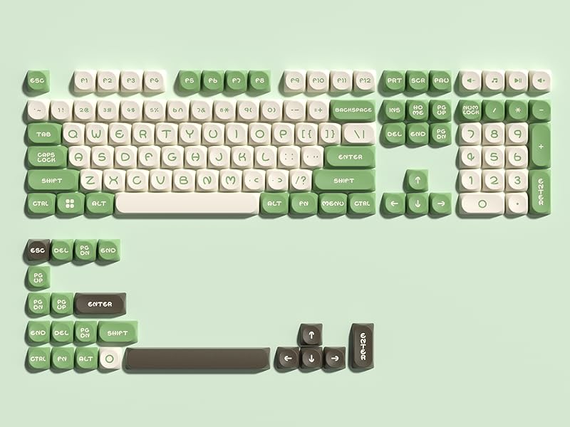 The dagaladoo Double Shot PBT Keycaps Set features 130 durable, dye-sublimated keys in a unique green/beige/brown tri-color scheme. Designed with an ergonomic rounded MOA profile, these PBT keycaps offer superior texture and resistance to wear and oil. Compatible with most MX-style mechanical switches and keyboard layouts from 60% to 100%, this set combines lasting quality with eye-catching aesthetics for the discerning professional.