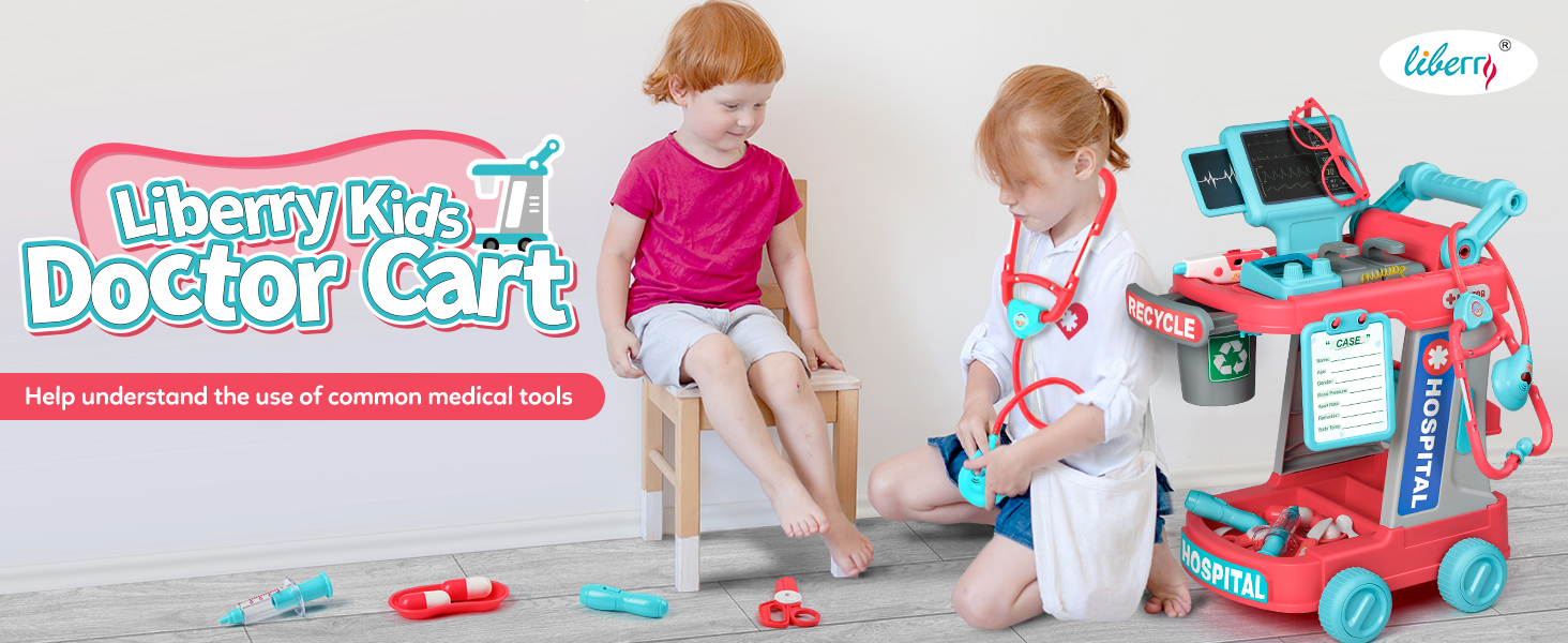 The Liberry Doctor Kit is a high-quality, safe, and realistic medical playset designed for toddlers aged 2-5. Featuring a life-like doctor cart with sound and light effects, non-toxic materials, and stable anti-slip wheels, it encourages imaginative role play while helping children reduce anxiety about doctor visits. The set includes a comprehensive range of medical accessories and a two-layer storage cart, making it an ideal educational gift for birthdays and holidays.