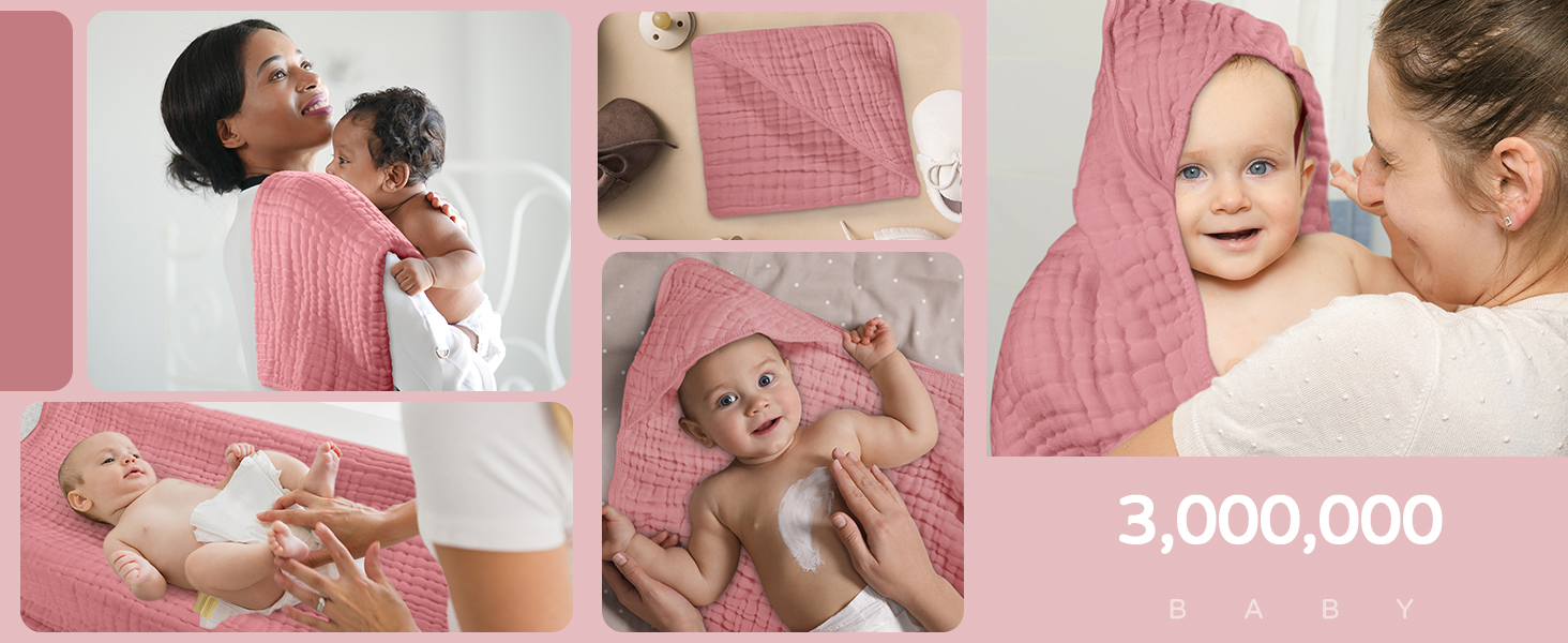 I was initially gifted a towel set a my baby shower that lasted maybe about 2 weeks after my baby was born. I was looking for something where I could literally wrap her into a cocoon and no skin would be exposed and these towels exceeded my expectations. Theyâre soft and keep my baby warm. The material is soft. They donât get any lint stuck on them at all like the other towels would. These arenât too thin either. They absorb water pretty well. Overall, a good towel for a growing baby.