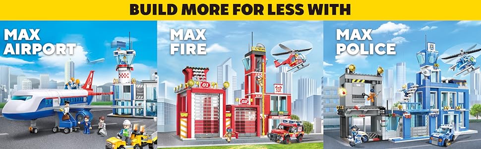 The MAX Adventure Fire Station Playset features over 976 pieces, including 3 buildable emergency vehicles and 5 articulated firefighter figures. Designed for kids 6 and up, it offers motor skill development through immersive, hands-on construction. Compatible with major brick brands, this 54.6 x 38.1 cm set delivers dynamic play with moving helicopter blades and endless creative possibilities.