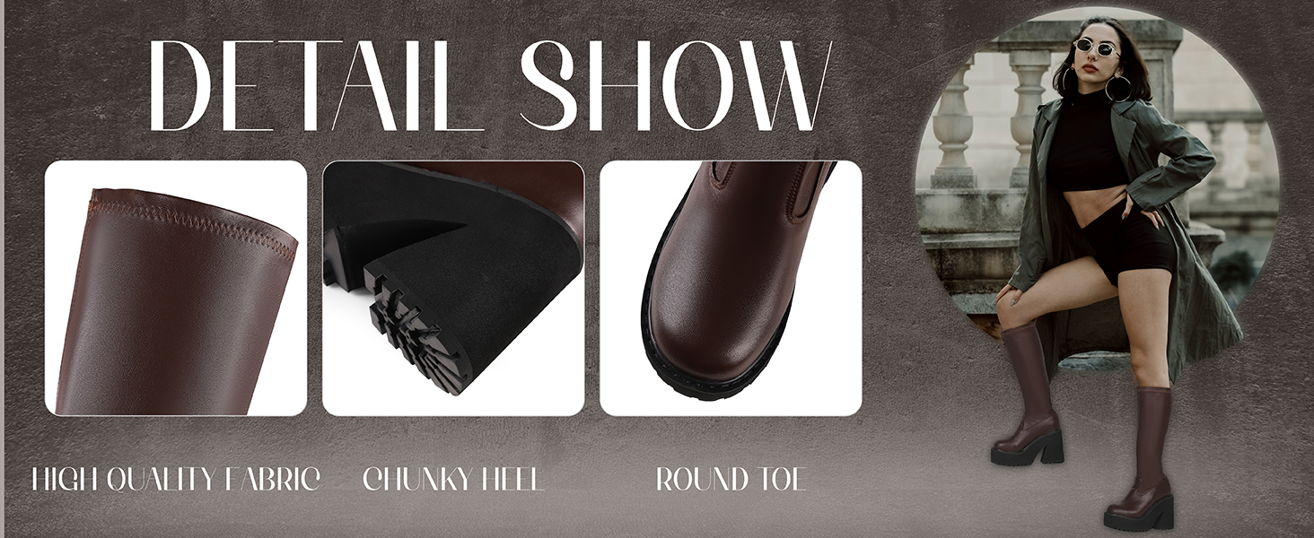 Aminugalwomens Elastic Knee High Boots Platform Chunky Block High Heel | Desertcart Seychelles