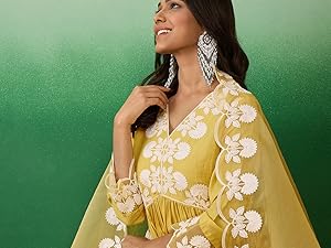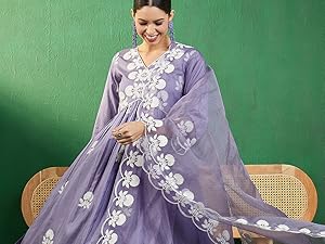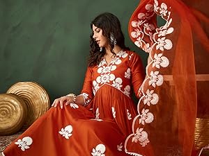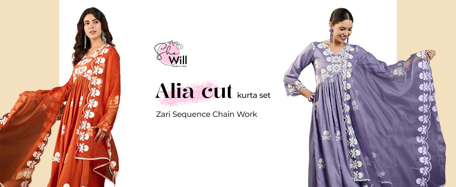Shewill Womens Silk Blend Chain Work Embroidered A Line Kurta | Desertcart Seychelles
