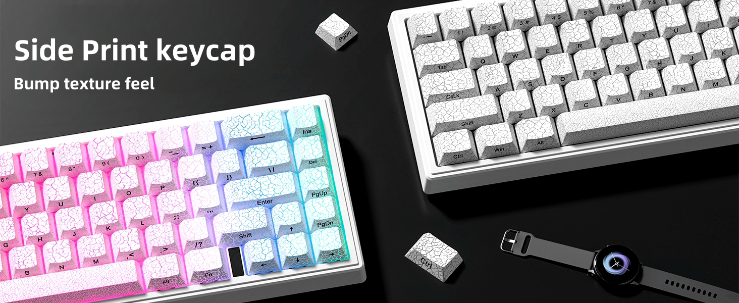 dagaladoo White Ice Crack keycaps,Transparent Custom keycaps 60 75 Percent,Ceramic PBT Key caps Shine Through Key caps,Side Printed,Cherry Profile Keyboard caps for Mx Switches Mechanical Keyboard