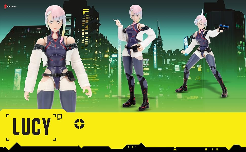 The Jada Cyberpunk Edgerunners Lucy 1:12 scale action figure is a meticulously crafted collectible featuring high articulation for dynamic posing, a soft goods jacket for realistic texture, and multiple accessories including alternate heads, hands, a pistol, and Monowire attachments. Perfect for fans aged 15+, it arrives in premium collector-grade packaging, making it a standout centerpiece for any Cyberpunk enthusiast’s display.