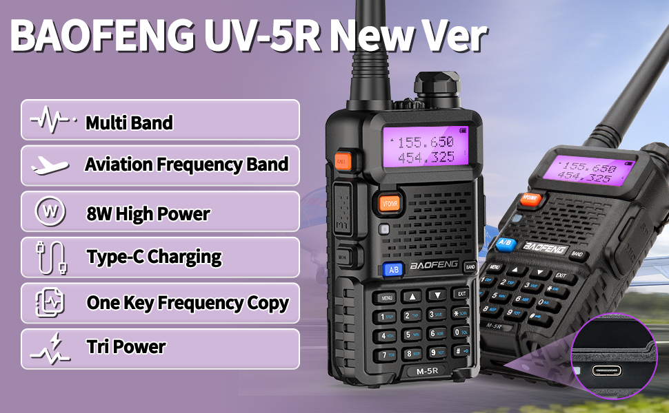 The UV-5R M-5R Upgrade is a professional-grade 8W handheld two-way radio featuring multi-band reception, 128 channels, and advanced frequency copy technology. Equipped with USB-C fast charging, VOX hands-free operation, and emergency alarm functions, it’s engineered for outdoor enthusiasts and professionals demanding reliable, long-range communication in any environment.