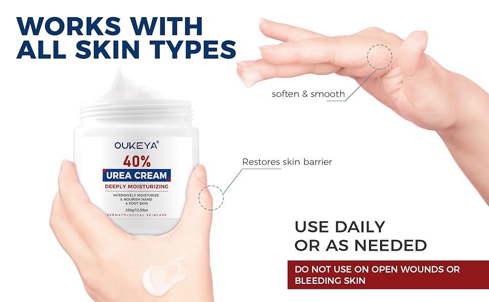 OUKEYA Urea Cream 40% is a maximum strength, dermatologist-tested foot and hand cream designed to deeply moisturize, soften, and repair cracked, dry skin. Enriched with natural ingredients like glycerin and avocado, this fast-absorbing formula targets calluses and rough patches, delivering visible results within weeks. Packaged in a convenient 350g x 4 set, it’s the ultimate daily essential for professional millennials seeking effective, no-fuss skin care.