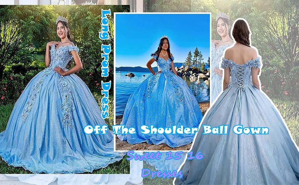 JinglizLong Prom Dress Off The Shoulder Quinceanera Dresses Ball Gown Tulle 3D Hand Made Flowers Sweet 16 Dresses