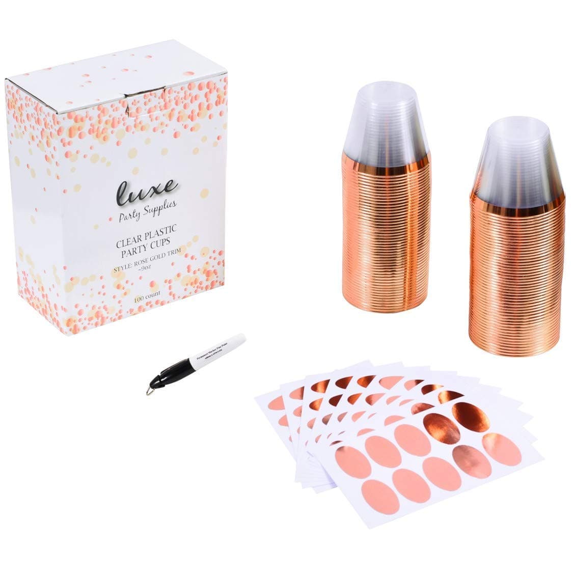 I purchased these cups for my engagement party and they were a big hit! The Rosé gold color was beautiful and the matching stickers were awesome for people to write their names on the cup. The pen worked well and no one lost their glass :)Definitely recommend!! I want to buy more for future parties.